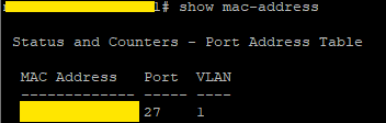 HP 2530 switch’te aşağıdaki adımları takip ederek bir porta bağlı cihazın MAC adresini öğrenebilirsiniz.
