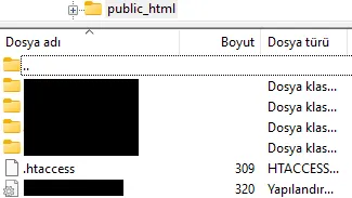Bu işlem için öncelikle sunucunuzun kök dizininde .htaccess dosyasını bulmanız gerekiyor. Bunun için FileZilla benzeri bir program kullanabilir yada web sunucunuzun cPanel benzeri arayüzünden Dosya Döneticisine ulaşabilirsiniz.
